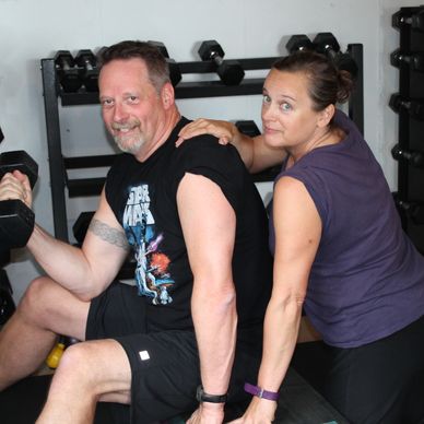 "Colleen does partner weight training for my fella and I. We are at different fitness levels yet she manages to give us both a good work out. She knows her stuff including how to work around injuries and she's full of energy. There's a lot of hard work combined with joking and laughs!